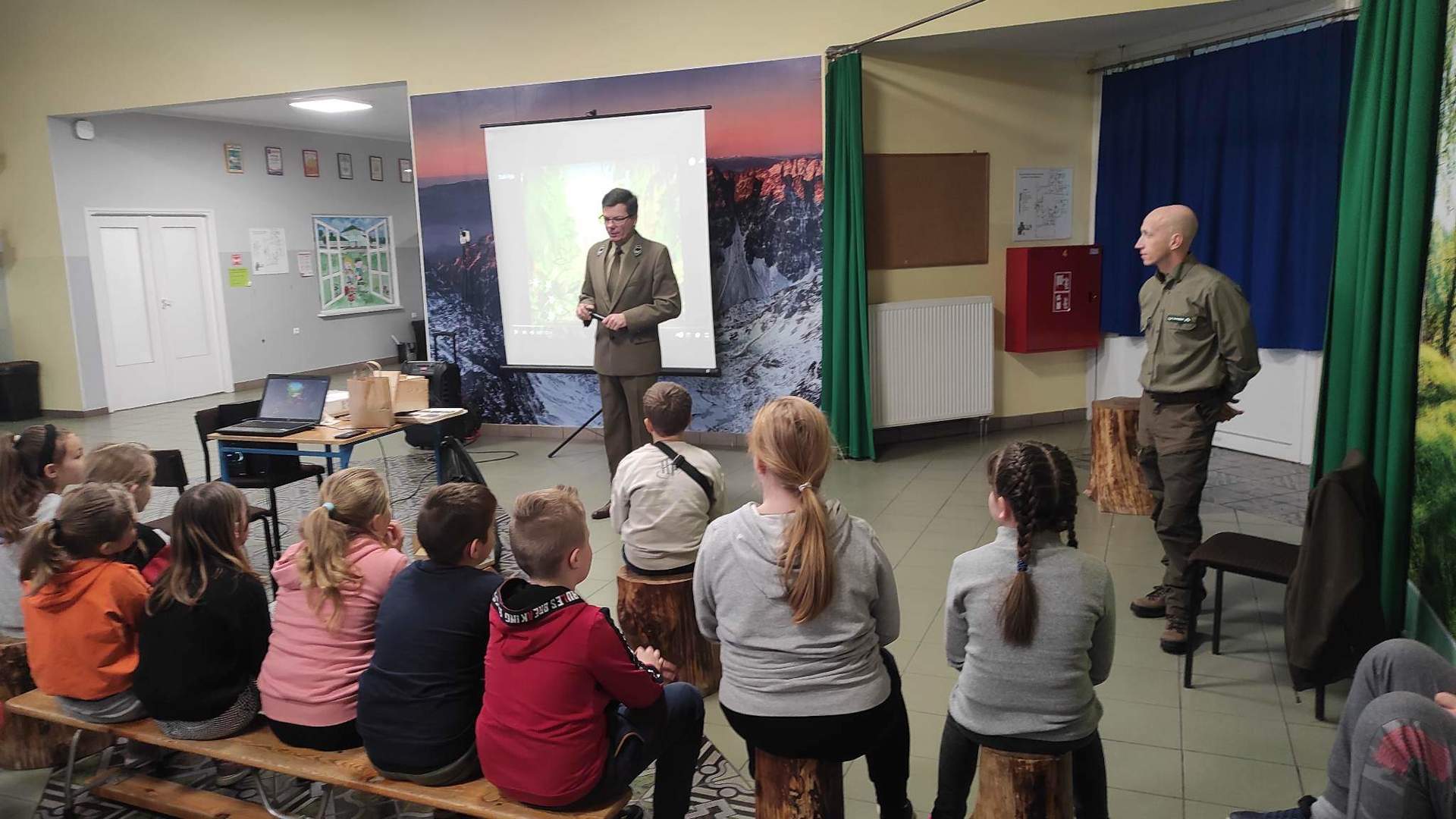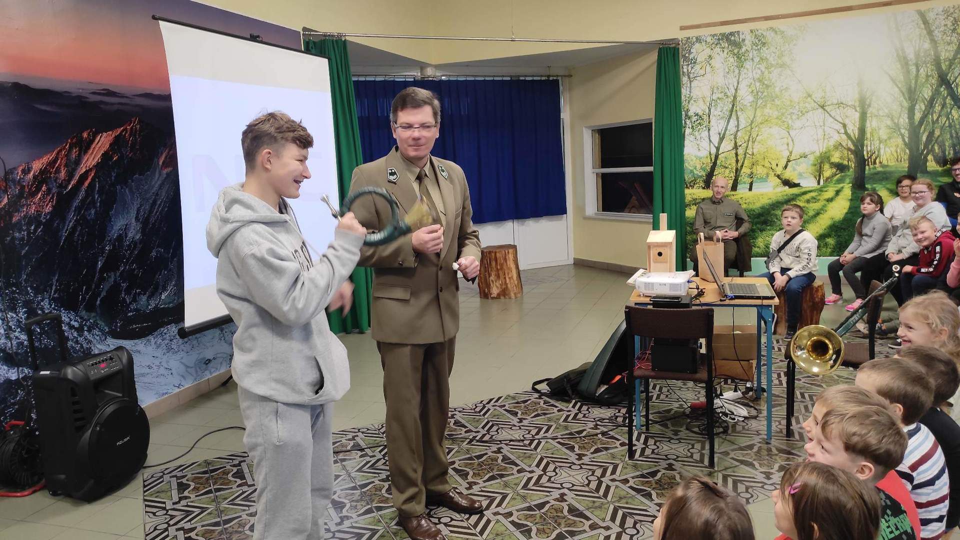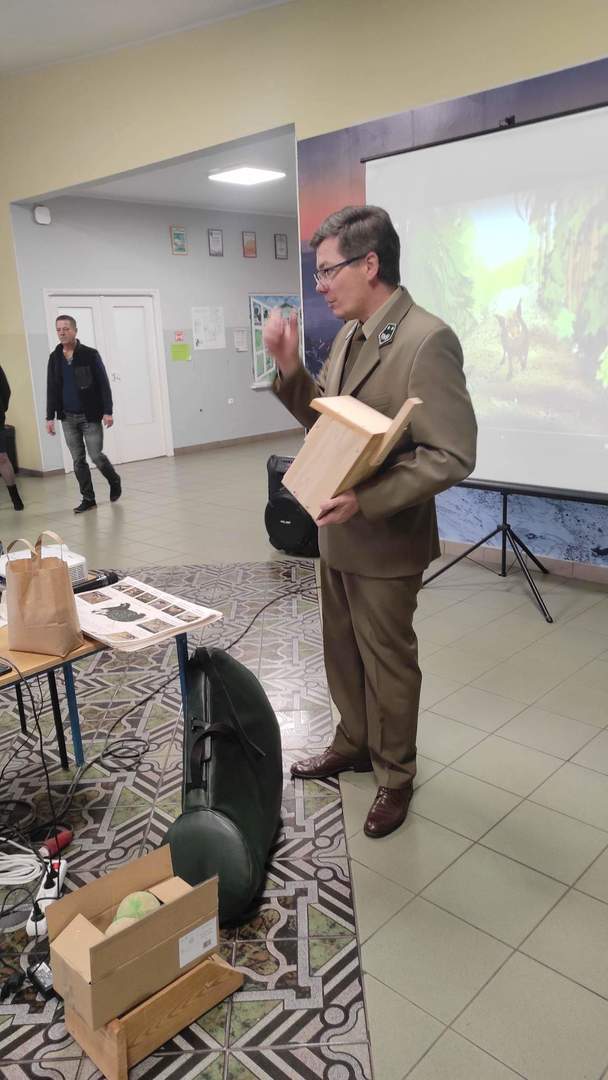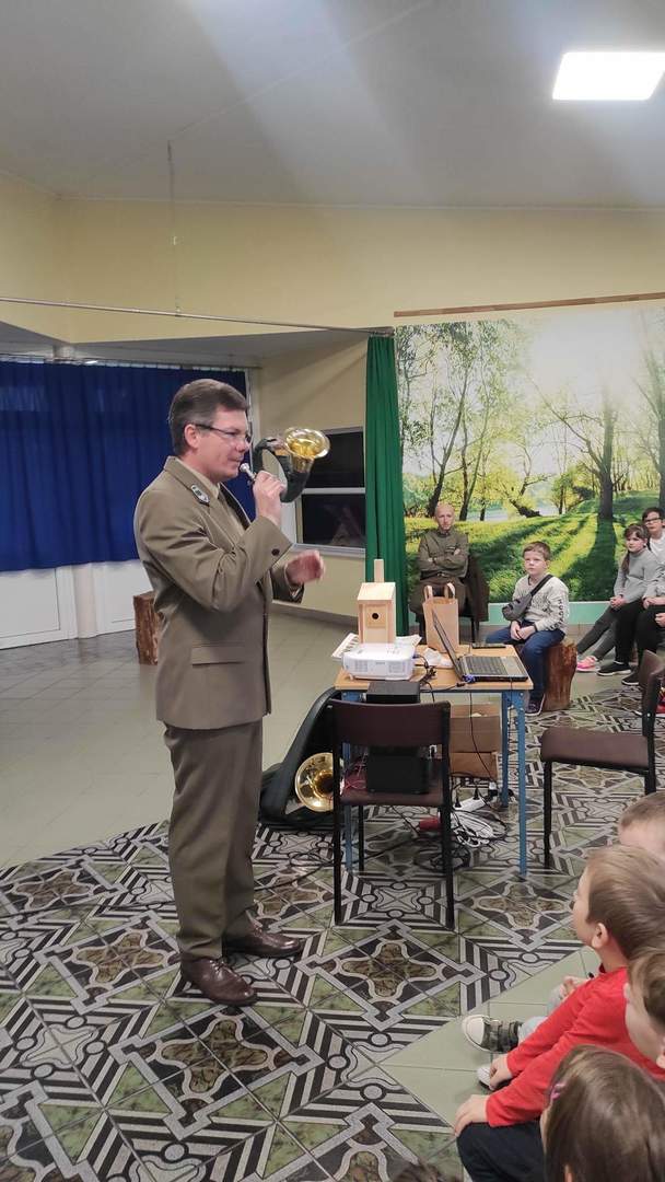 W poniedziałek 05 grudnia 2023 r. w Szkole Podstawowej w Starkówcu Piątkowskim gościli pracownicy Nadleśnictwa Jarocin: leśniczy Krzysztof Filipiak i podleśniczy Marek Dobroczyński. W czasie godzinnego spotkania uczniowie poznali wiele ciekawostek o zwierzętach leśnych. Była też mowa o tym jak się w lesie zachowywać i jak pomagać zwierzętom przetrwać zimę. Największym zainteresowaniem cieszyła się gra na rogu myśliwskim. Wspólnie rozwiązywano także krzyżówkę, której zadaniem było podsumowanie zdobytej przez uczniów wiedzy. Po spotkaniu obaj panowie zostawili dzieciom kule z ziarnem by mogli powiesić je w ogrodzie, w by w ten sposób dokarmiać ptaki zimą.